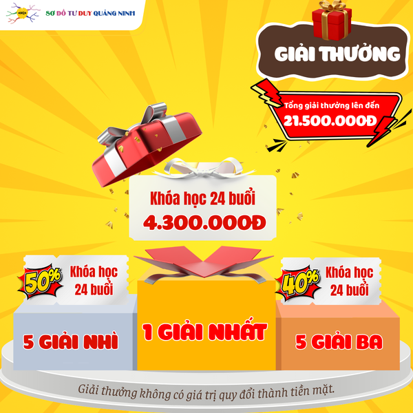 - Giải Nhất (01): Khóa học Chuyên sâu 24 buổi trị giá 4.300.000đ + Giấy chứng nhận “Nhà Mindmap Truyền Cảm Hứng”