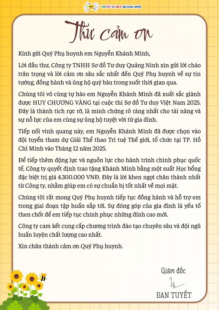 💌 THƯ CẢM ƠN GỬI QUÝ PHỤ HUYNH – NHỮNG NGƯỜI ĐỒNG HÀNH CÙNG CON TRÊN HÀNH TRÌNH CHINH PHỤC TRÍ TUỆ THẾ GIỚI 2025 🌍